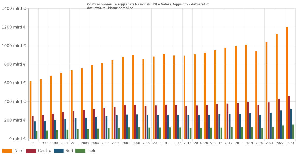 Impossibile visualizzare il grafico: Valore Aggiunto Valore aggiunto: il valore aggiunto è dato dal valore della produzione meno il valore dei costi intermedi; consente di misurare la crescita del sistema economico in termini di nuovi beni e servizi disponibili per gli impieghi finali. Valutazione Mar-2024 (stima preliminare)